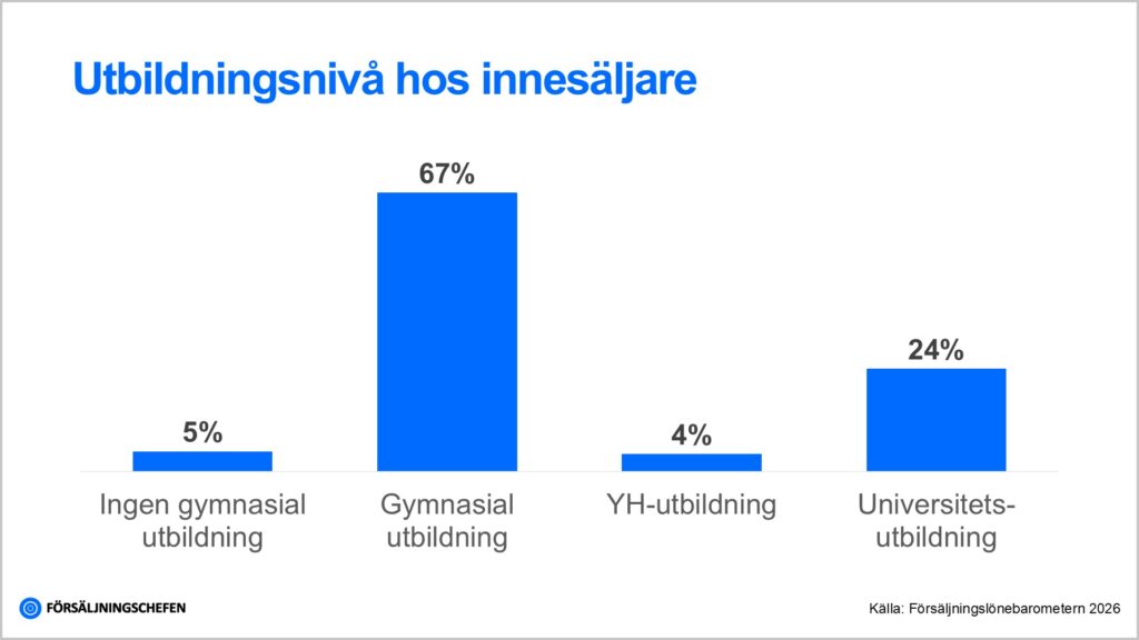 Det innebär att YH-utbildningar är betydligt mindre vanliga bland innesäljare än i många andra säljroller, exempelvis Key Account Managers eller mer tekniskt orienterade säljroller.